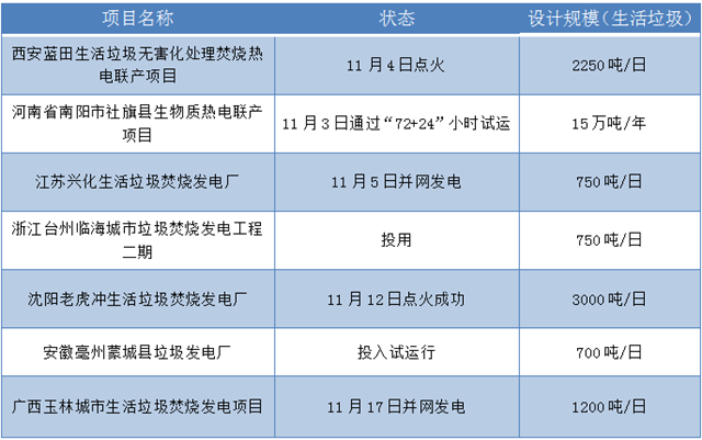 來看看,近段時間都有哪些垃圾焚燒項目正式投產(chǎn)了。